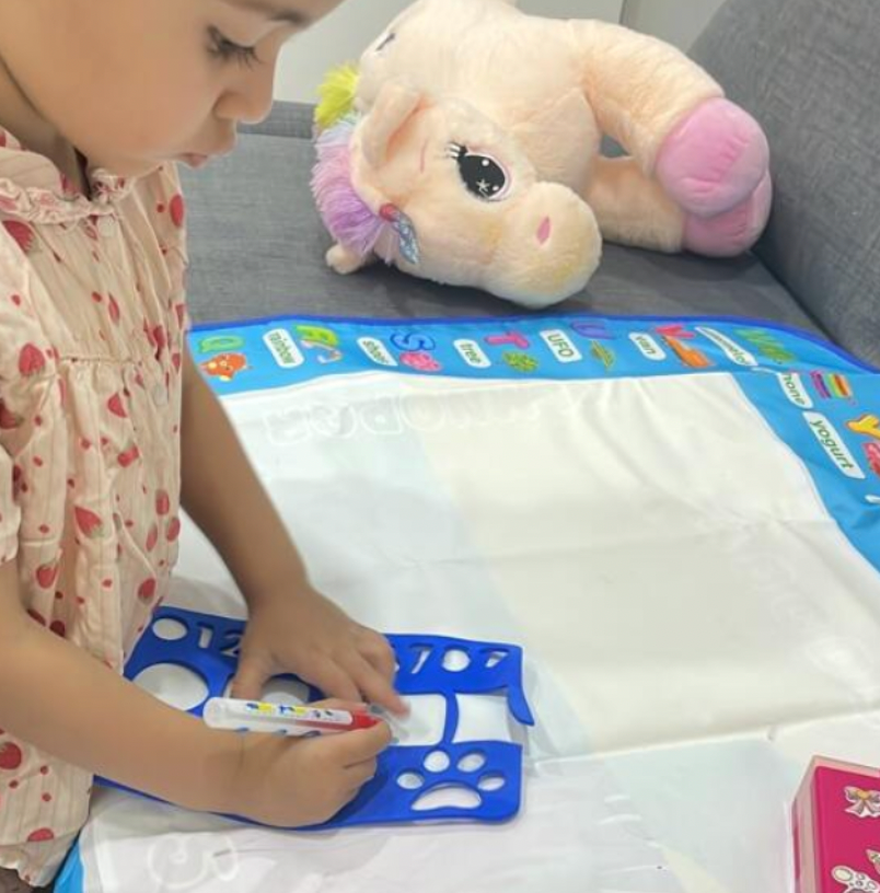 It’s more than a play mat—it’s a gateway to creativity and a tool for fostering knowledge! Let your child explore their artistic side in a safe, mess-free environment with our SplashScape™ Magic Water Mat!